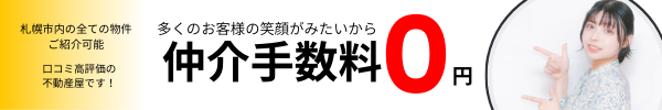 ルーミーは札幌市内全ての物件が仲介手数料0円でご紹介できます。